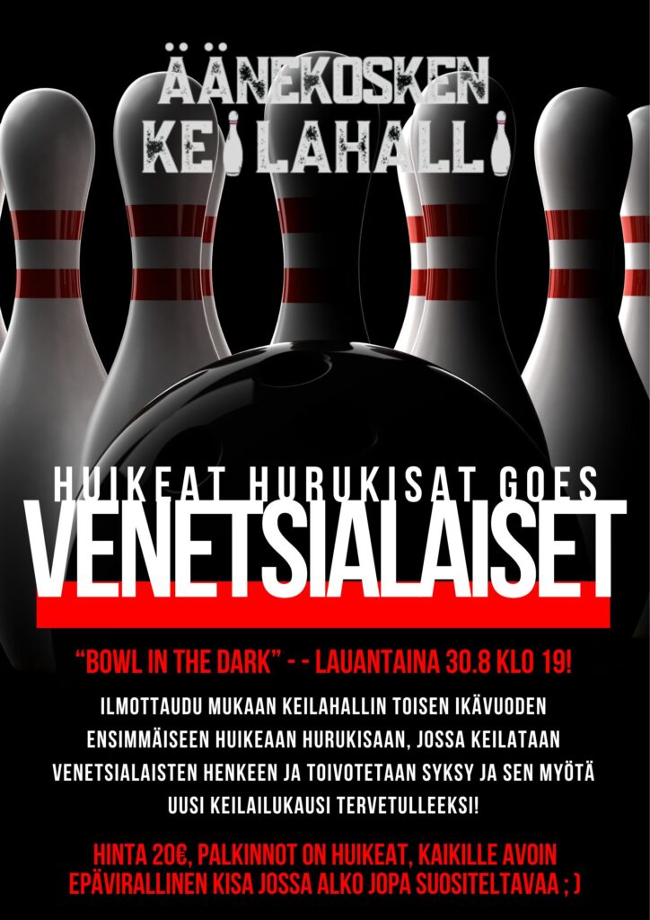 Samaan aikaan kun hyvästelemme kesää, toivotamme syksyn ja uuden keilailukauden tervetulleeksi huikean venetsialaisteeman siivittelemänä hurukisan merkeissä! Ilmoittautuminen on auki varaavuoro.com/aanekoski !